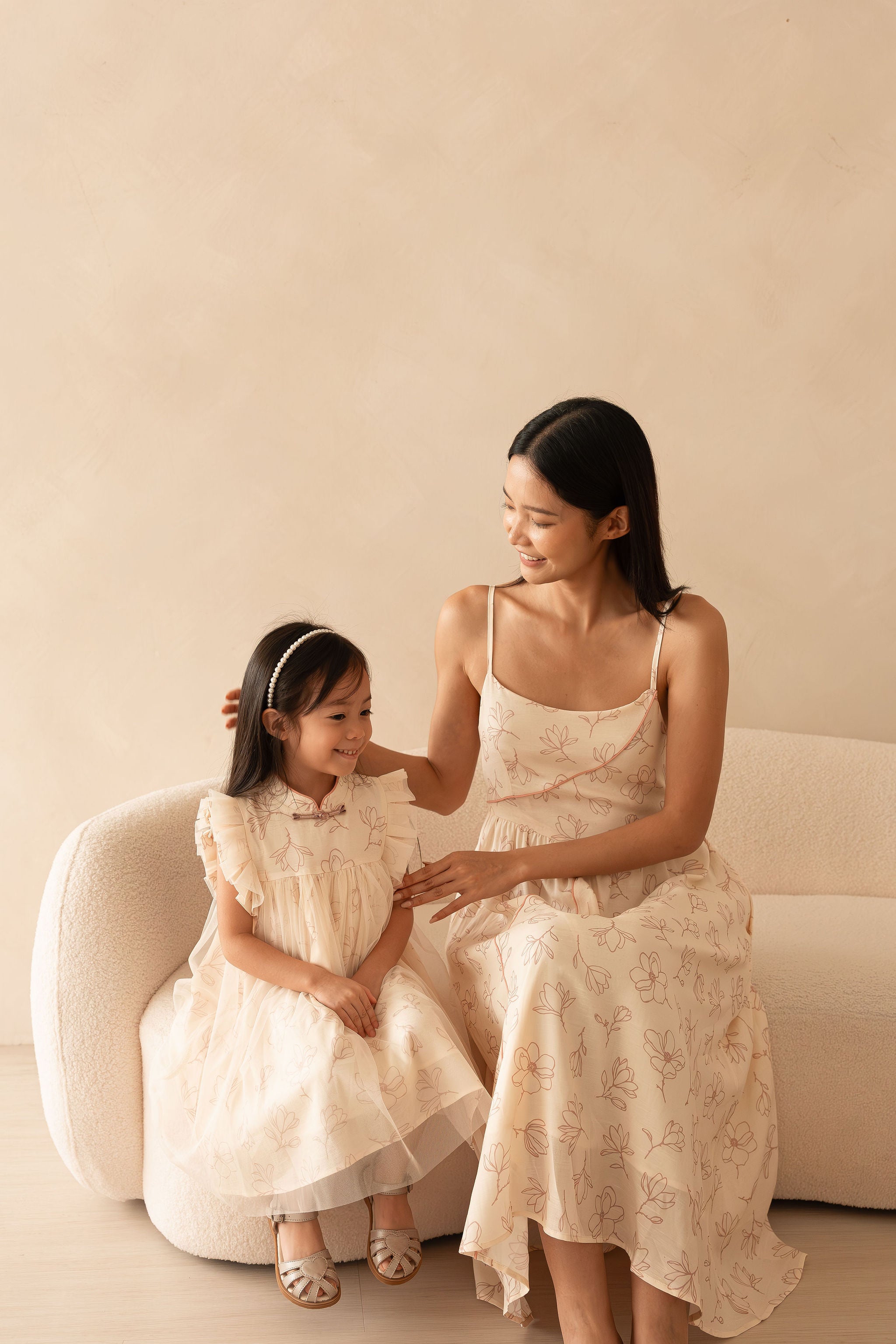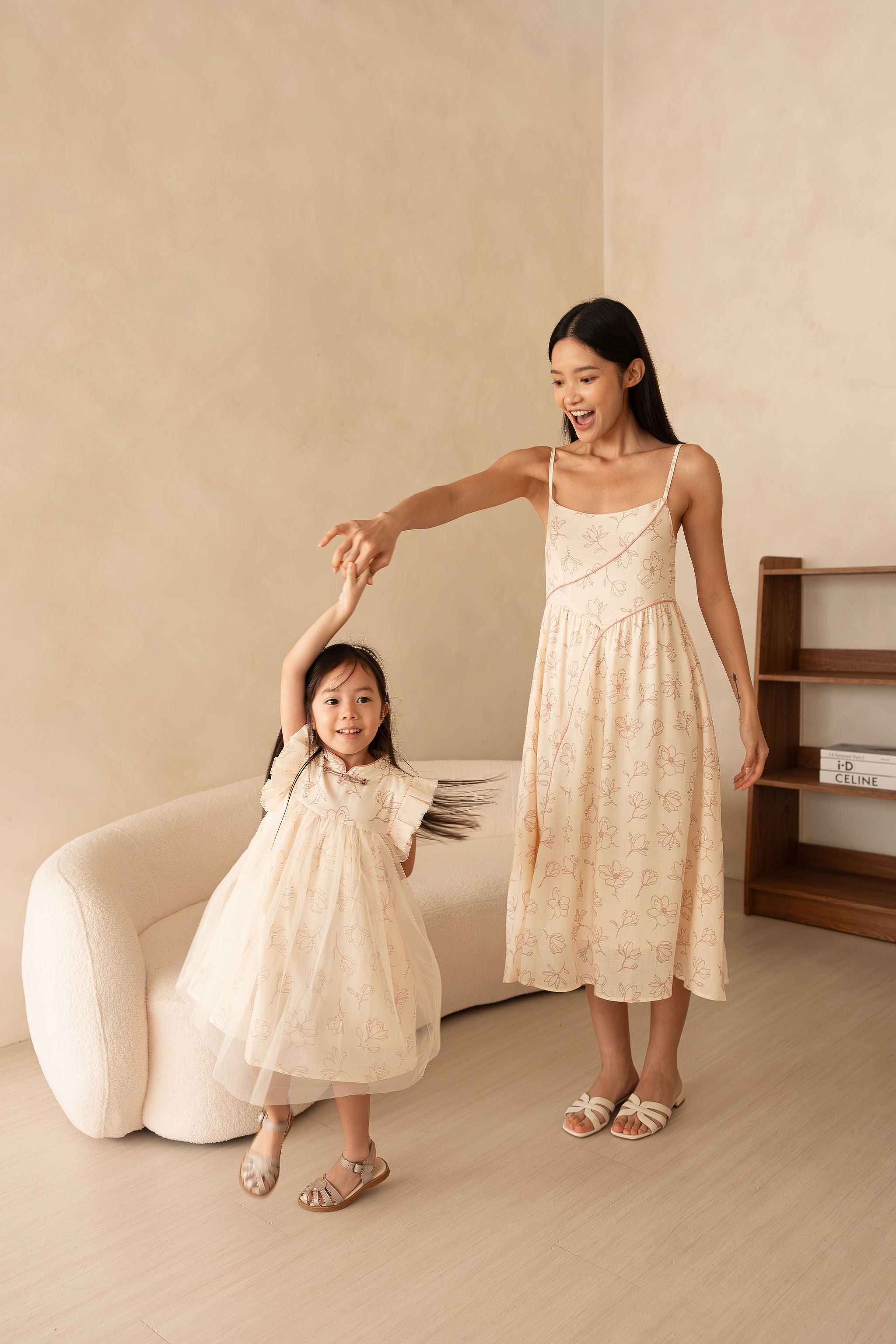 Le Fleur Magnolia Midi Dress in Crème Rosé is crafted from a premium Tencel-Linen blend — breathable, soft and perfect for Singapore weather. Features adjustable straps, a flattering empire flow, and functional side pockets. A bump-friendly silhouette ideal for CNY2026 visiting, celebrations and family matching sets.