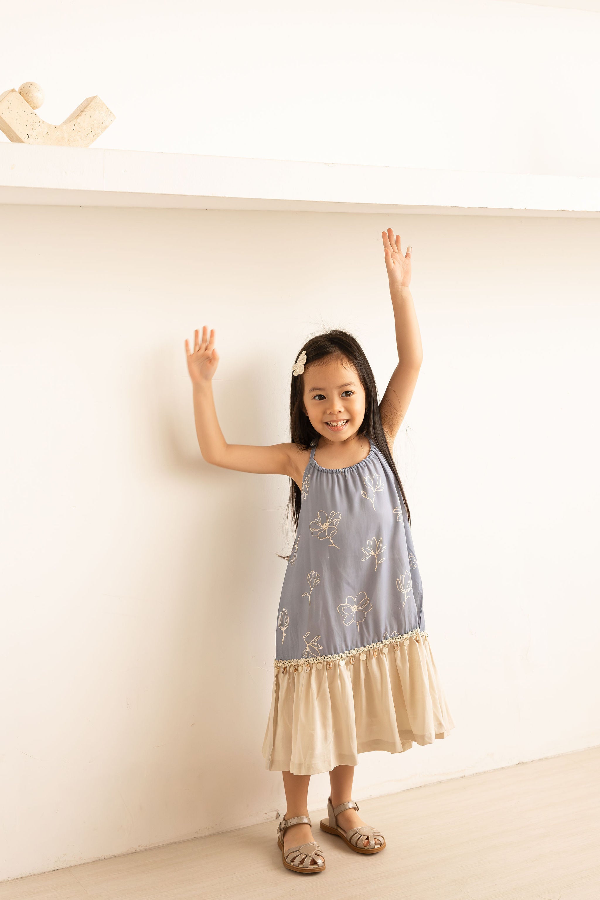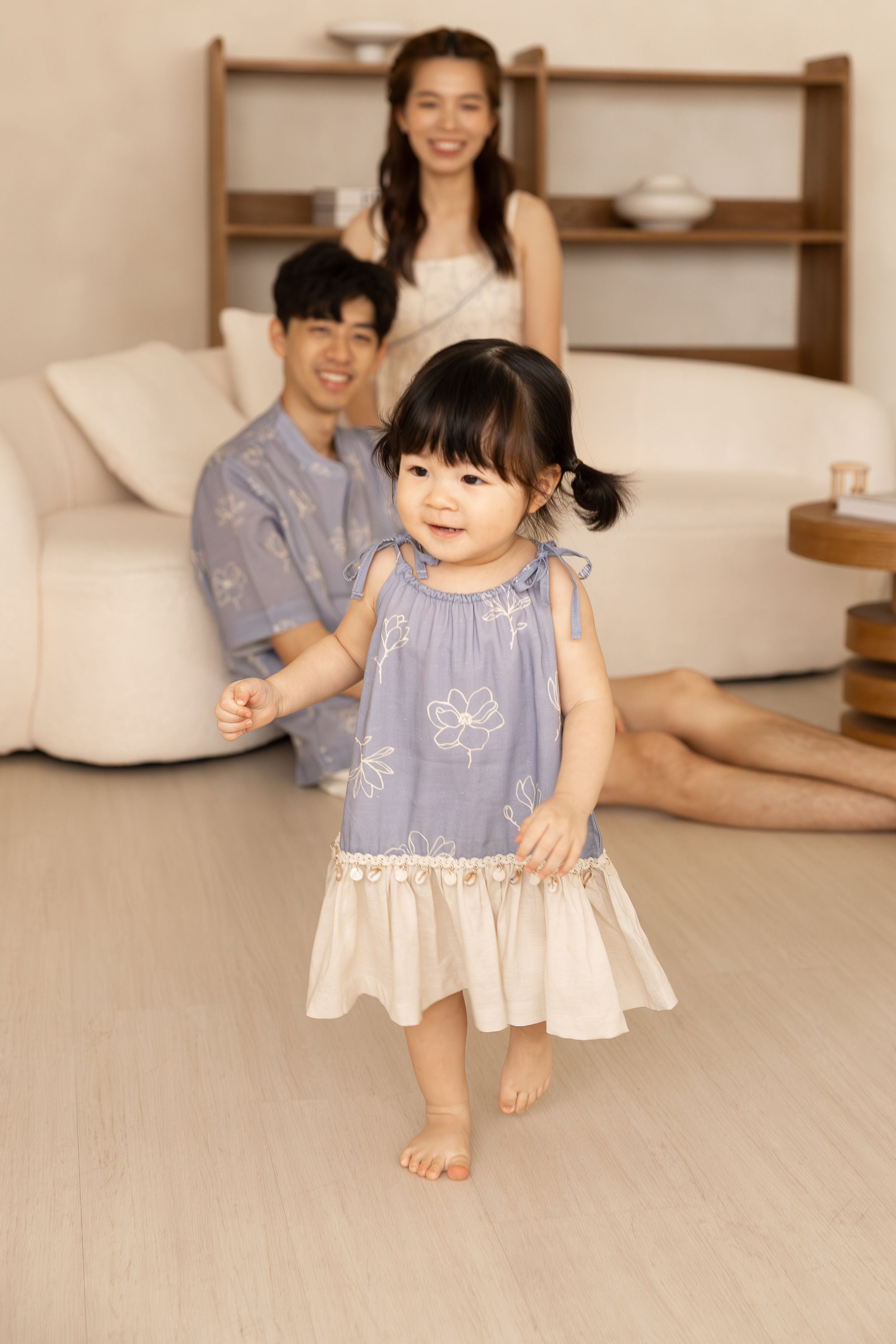 Designed for freedom and play — the Magnolia Girl Dress in Bleu Crème brings soft elegance through gentle ruffles and flowy movement. Crafted from breathable Tencel–Linen, perfect for little explorers during visiting. A charming match with mummy outfits for family portraits.