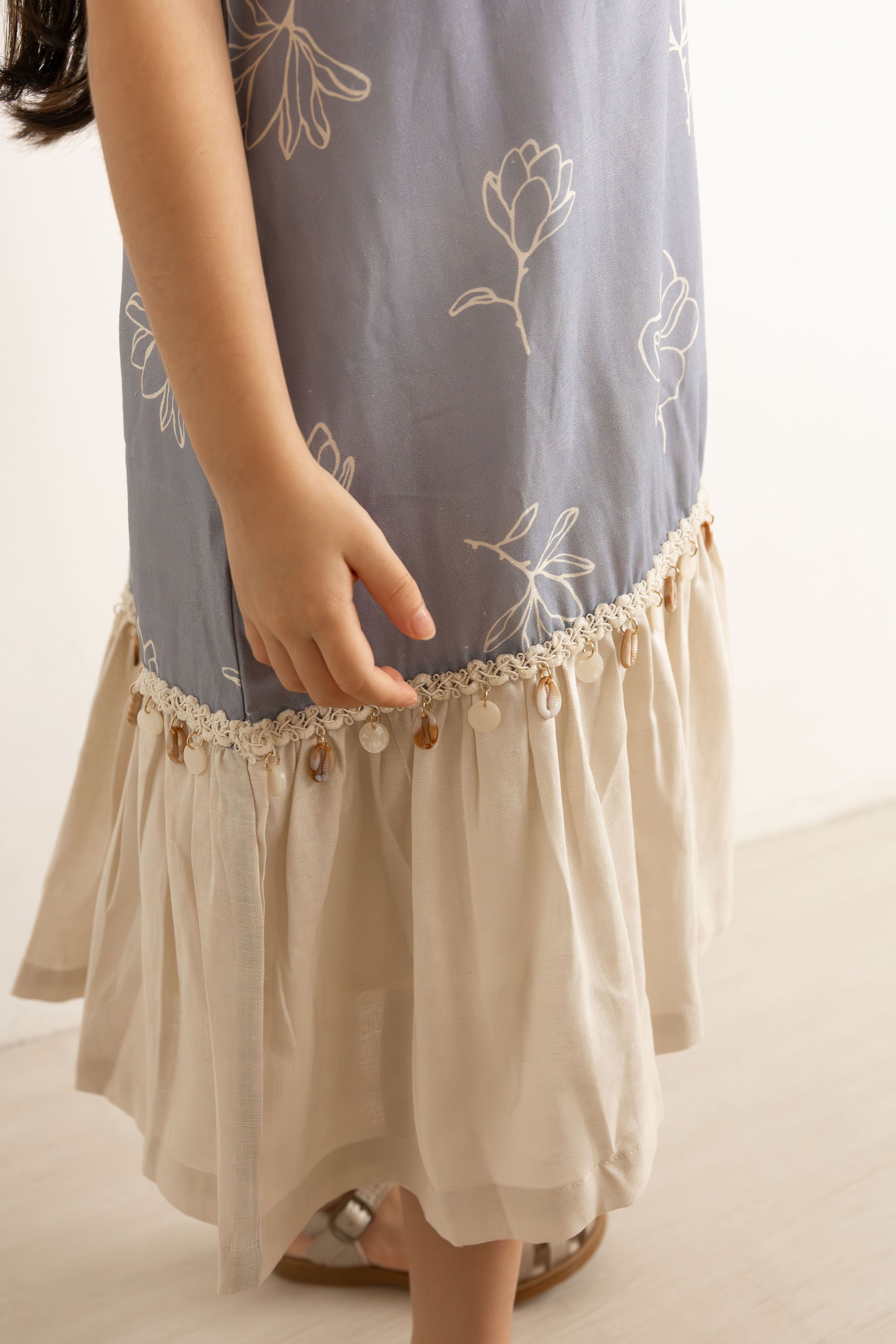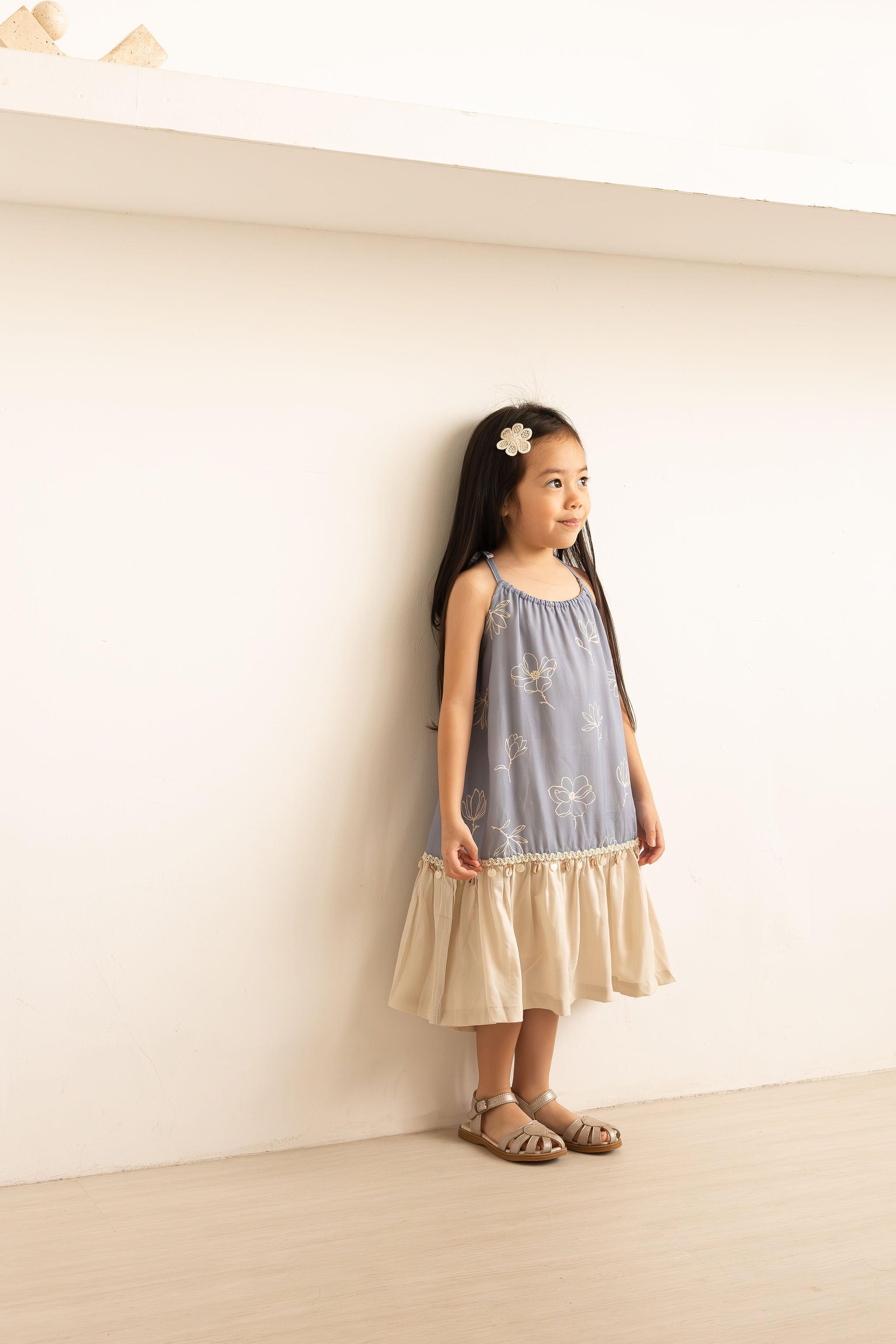 Le Fleur Magnolia - Ruffle Girl Dress in Bleu Crème