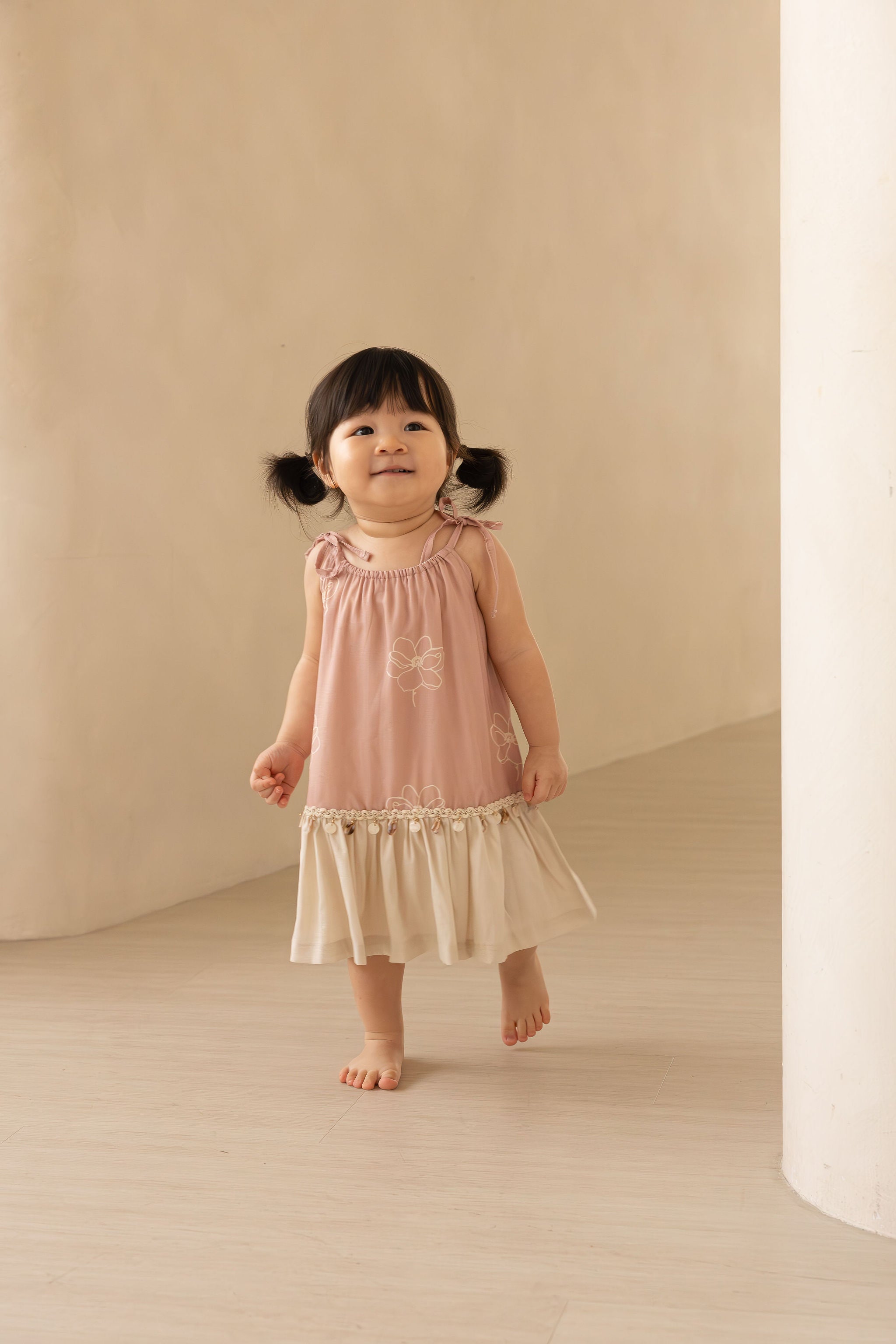 Le Fleur Magnolia - Tencel Linen Ruffle Girl Dress in Rosé Crème