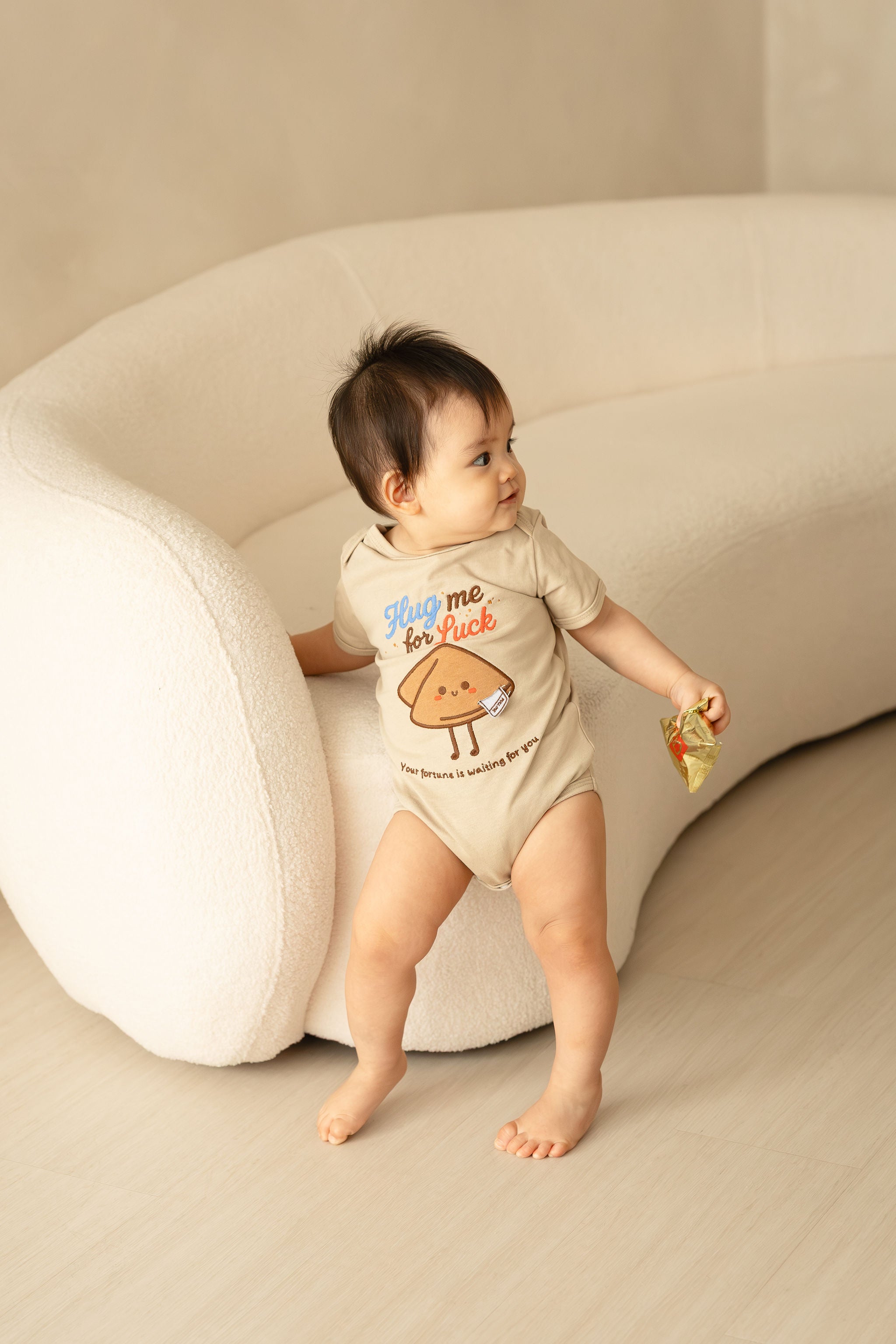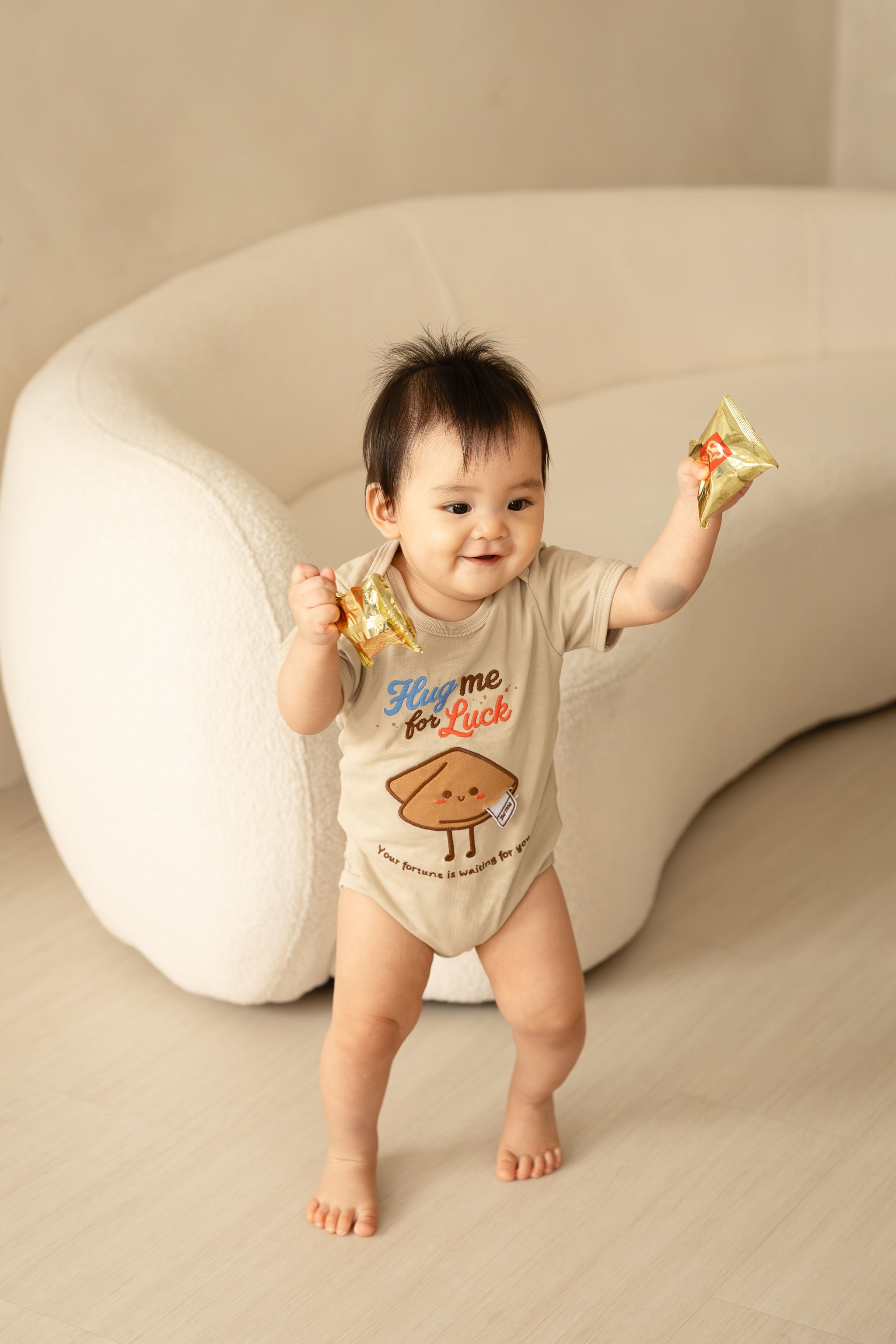 Fortune Cookie Club - Embroidered 'Hug me for Luck' Baby Romper with 4D ticket