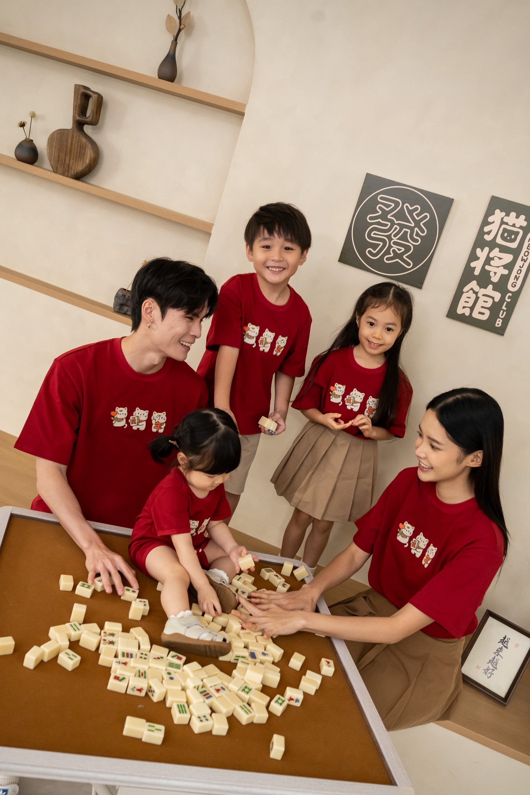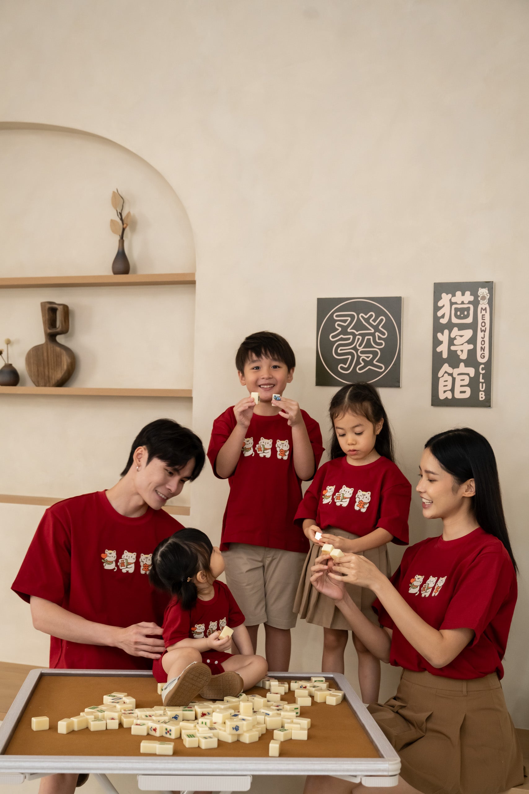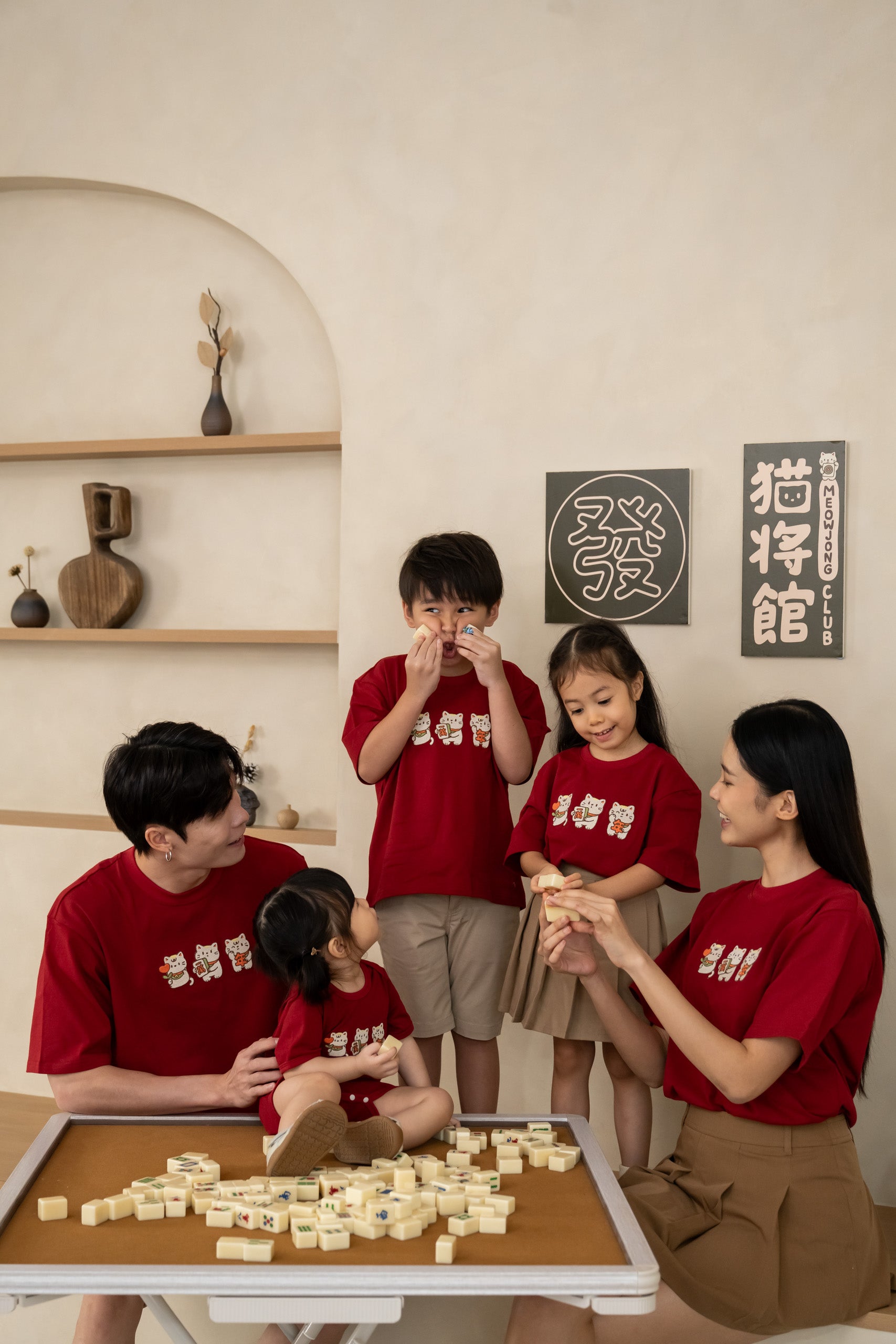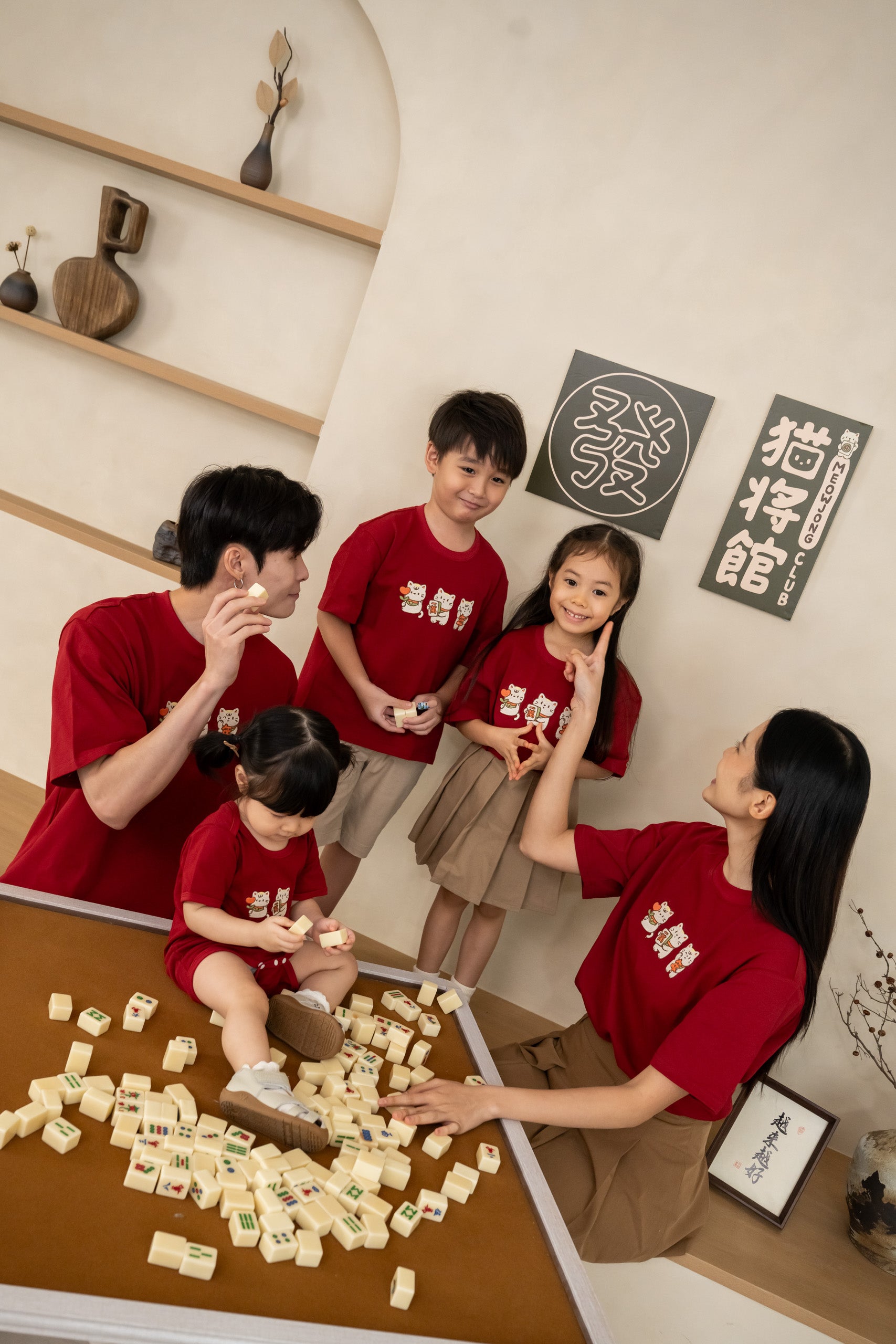 Cuteness that lasts 10,000 years! Our Meowjong Club Kids Oversized Tee – 爱你一万年 Edition features a sweet embroidered trio of lucky cats, each holding Mahjong tiles that spell out “爱你一万年” — Love You 10,000 Years.