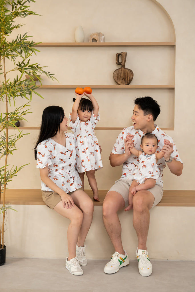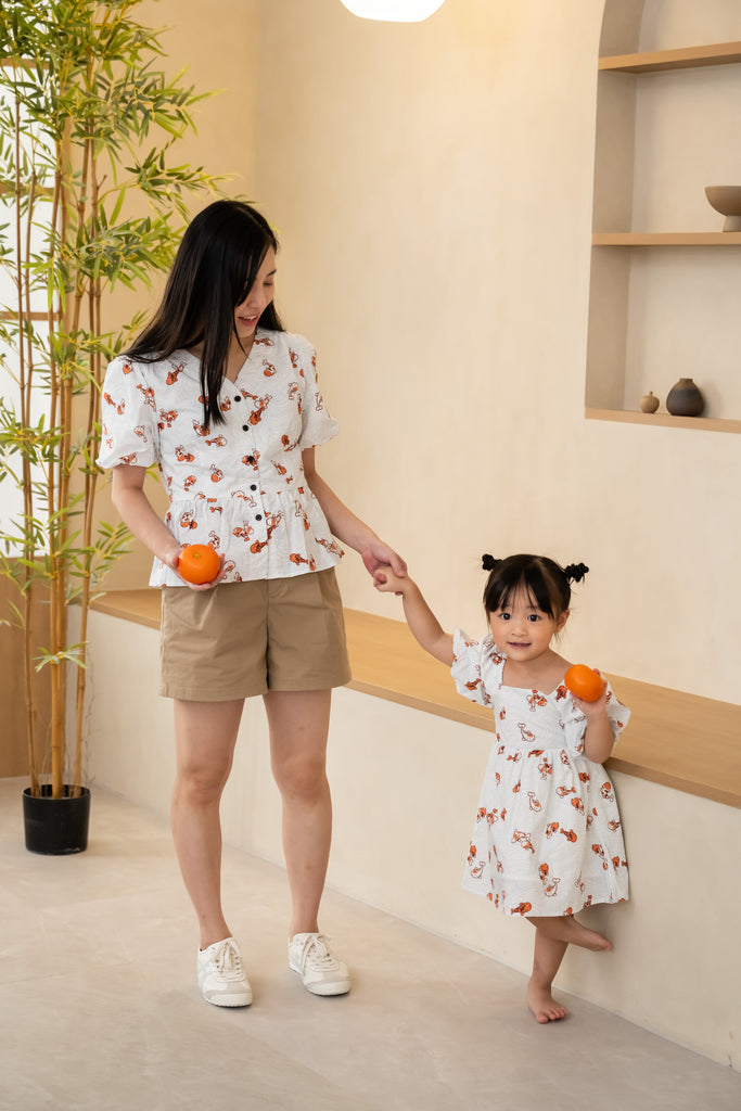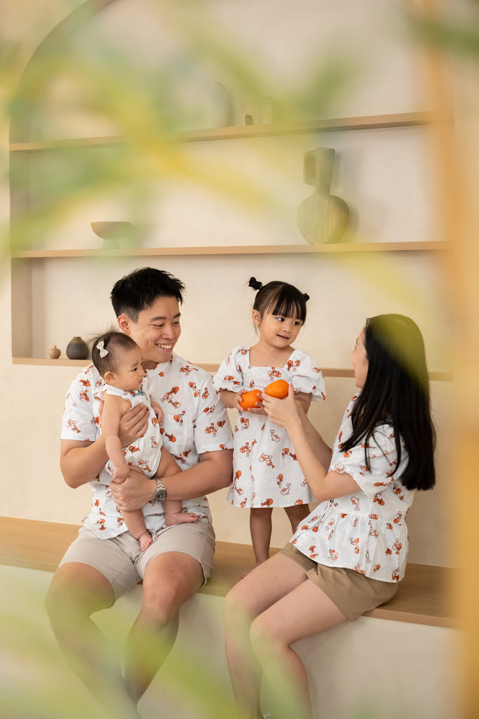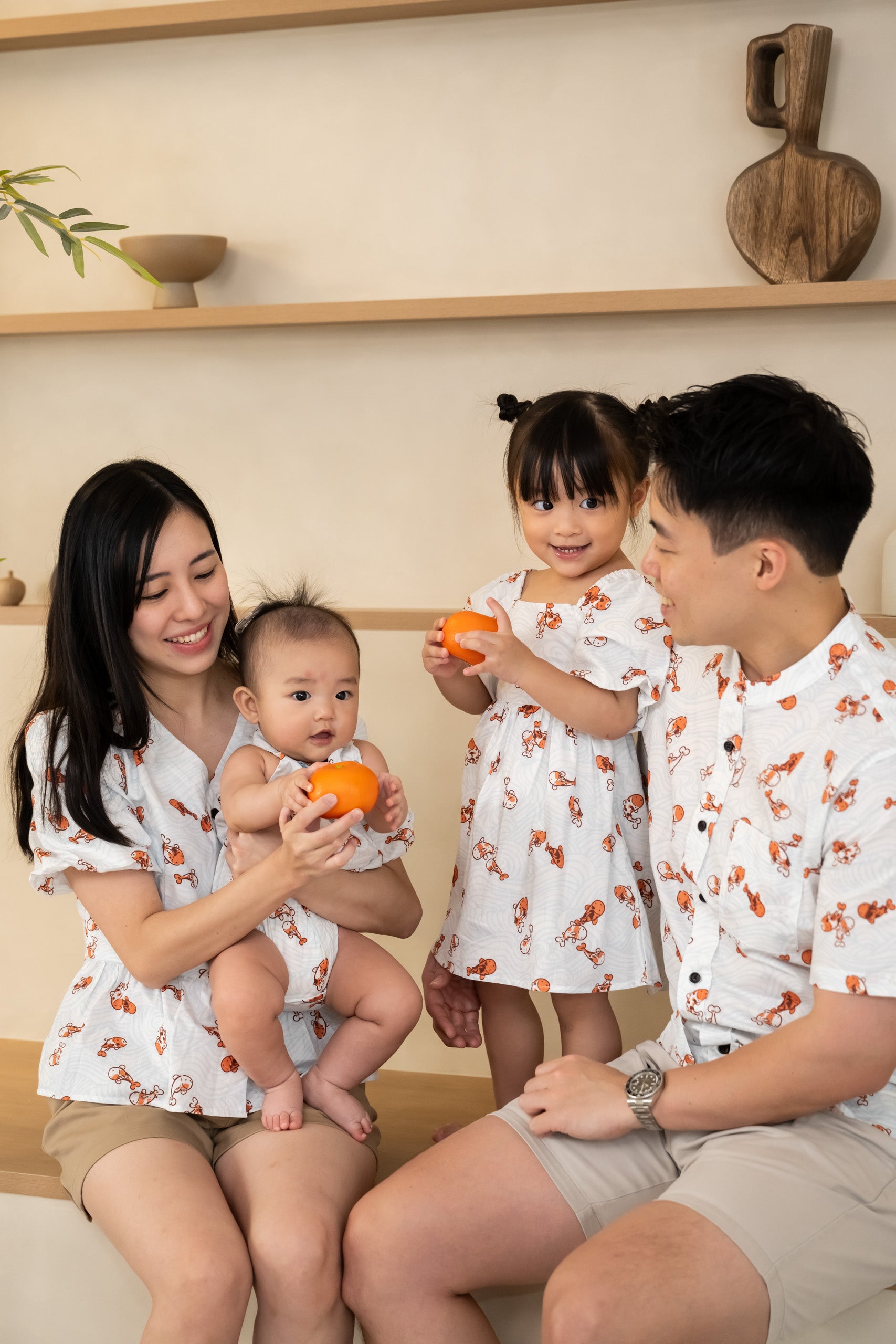 A feminine top for both CNY visits and daily wear. Designed with a V-neckline, structured peplum waist, functional buttons (nursing friendly), and airy puff sleeves. Crafted in our exclusive Koi Serenade print on 100% cotton.