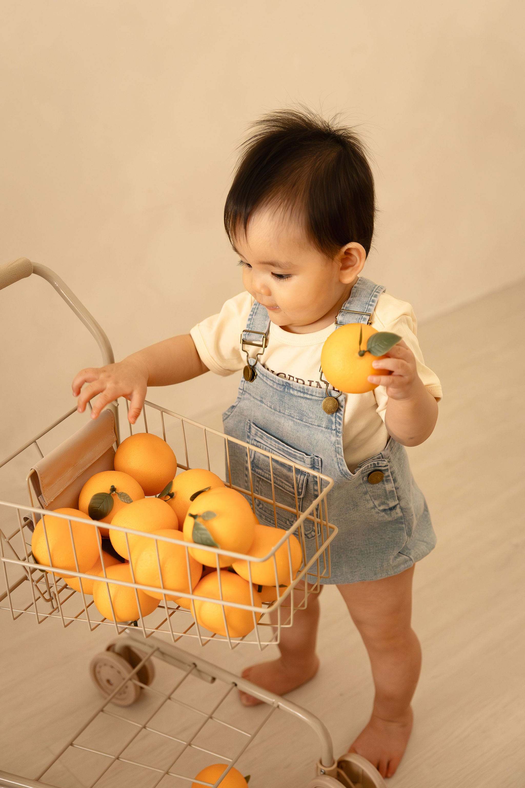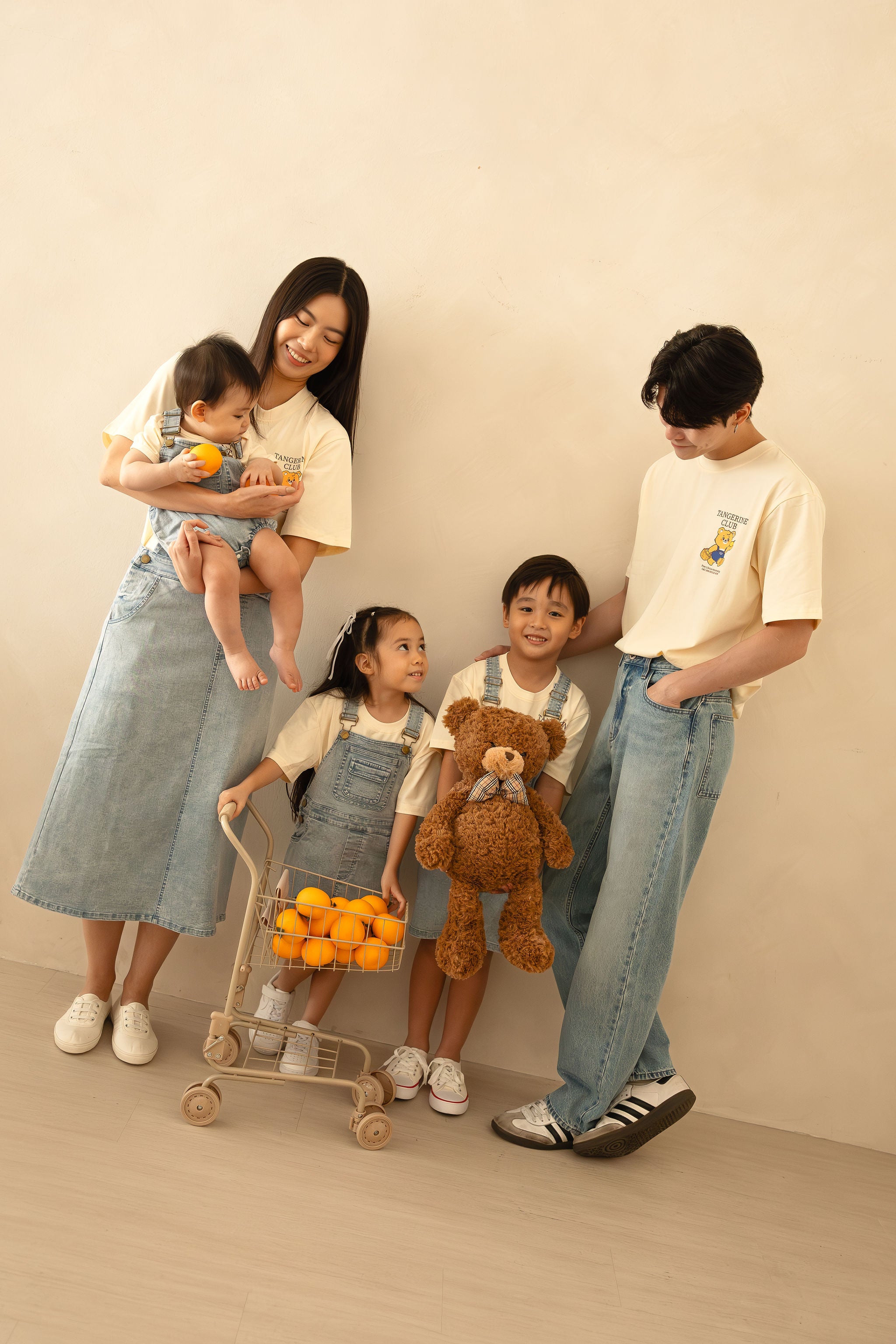 This one-piece features soft denim construction, adjustable shoulder straps, and a relaxed fit that allows babies to crawl, stand, and explore comfortably. Designed to be layered over our Tangerine Club baby tees, it’s an easy choice for family twinning and CNY celebrations.