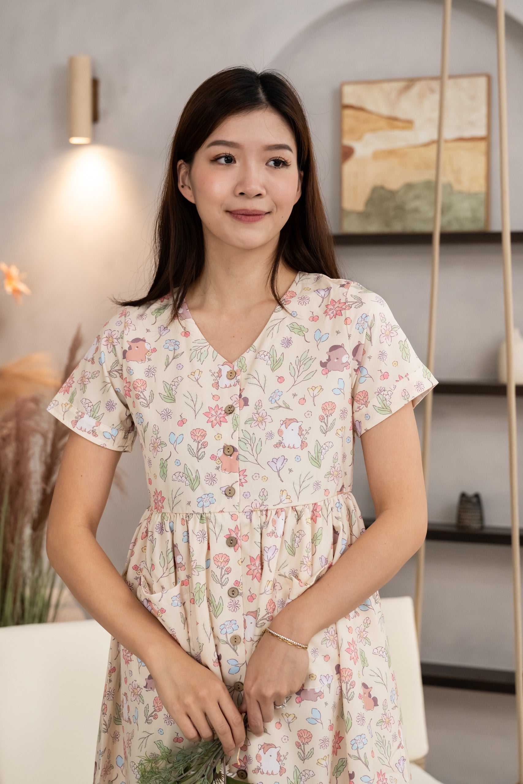Soft, charming, and full of warmth — the Dainty Horse Button-Down Dress is designed for mamas who love easy elegance and comfort. Featuring our exclusive in-house Dainty Horse print, this piece captures the joy of the new year with hand-drawn horses and florals symbolizing grace, strength, and harmony.