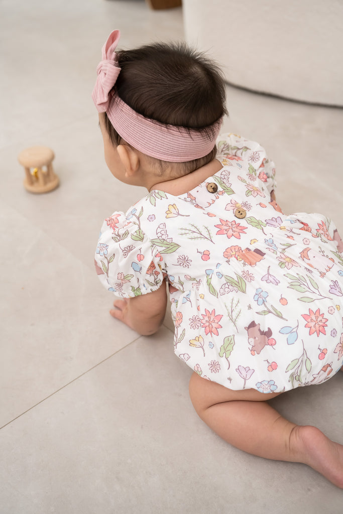 Sweet as spring, soft as a cuddle — the Dainty Horse Baby Girl Puff Sleeve Romper is designed to make your little one shine this Lunar New Year. Featuring our exclusive in-house Dainty Horse print, this charming piece captures the joy of the Year of the Horse with hand-drawn horses, florals, and pastel hues that speak of love and celebration. moments.