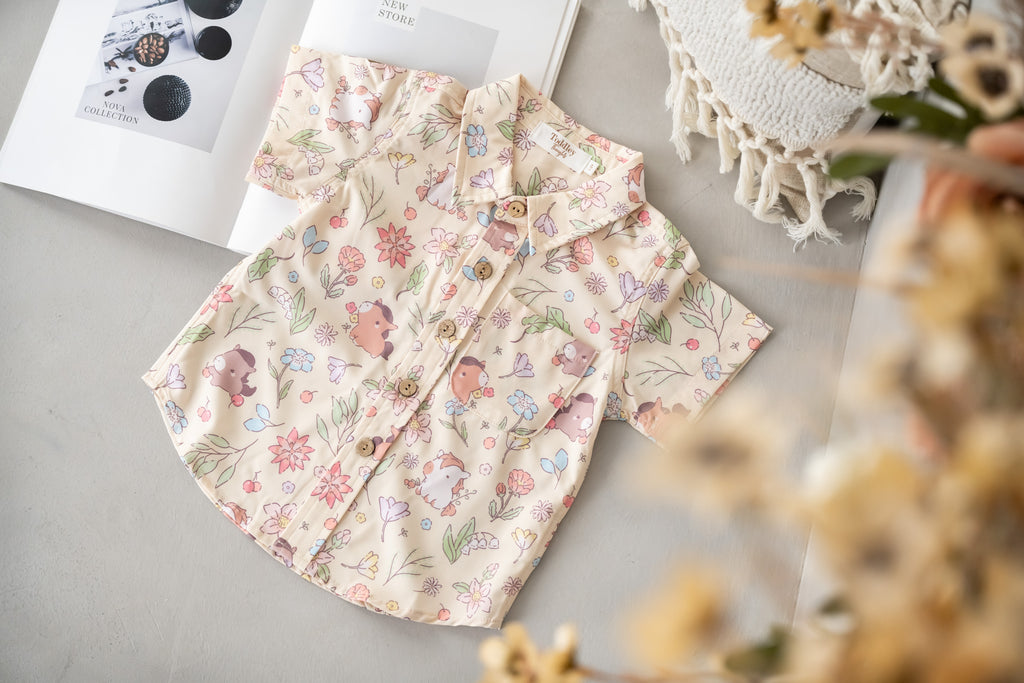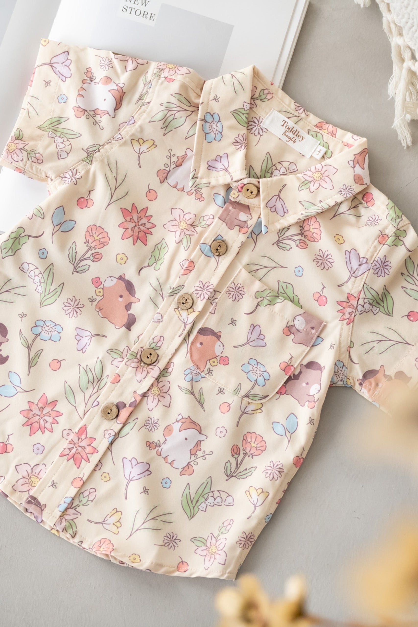 Dainty Horse - Full Print Boy Collar Shirt in Yellow