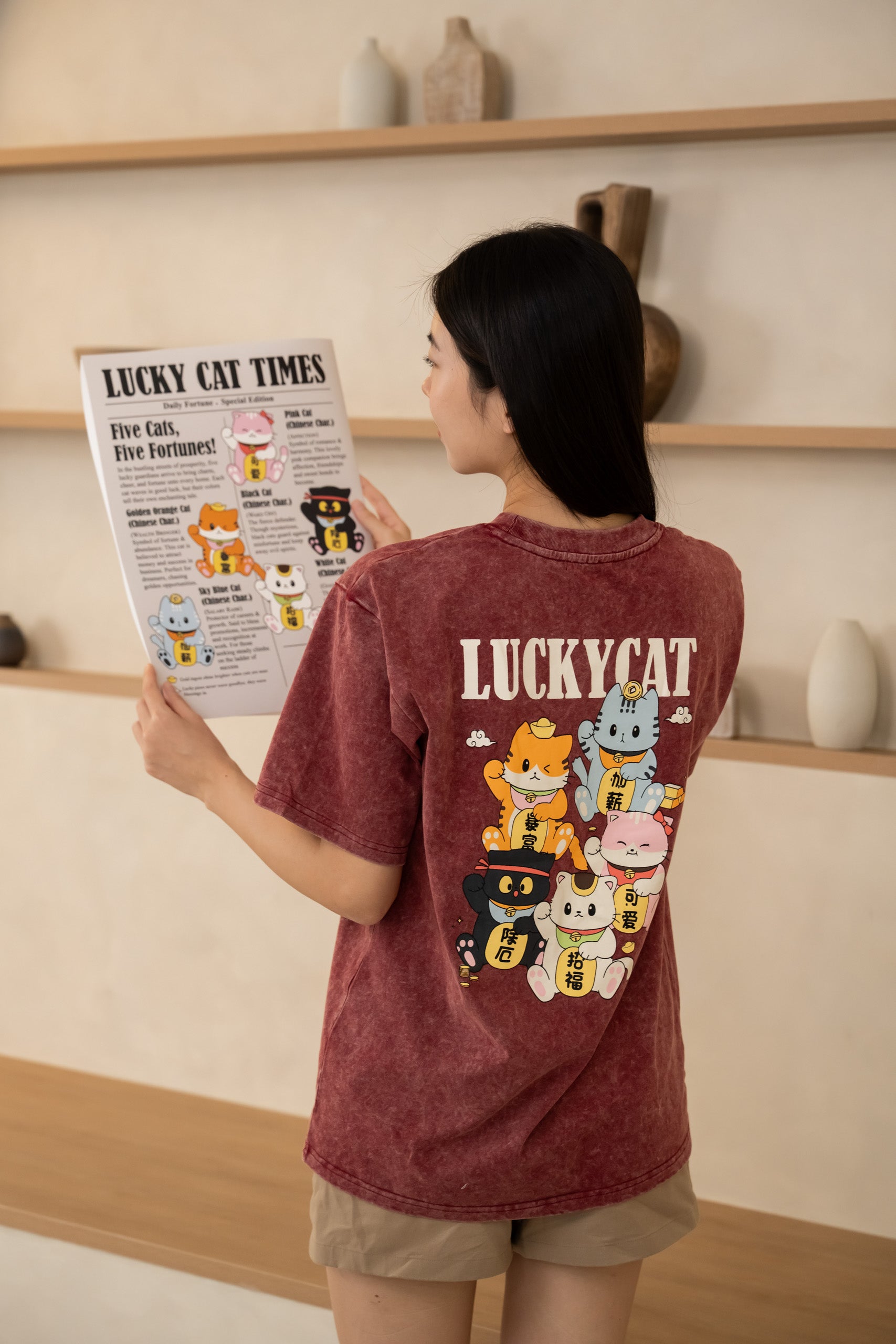 Meet your new lucky charm — the Lucky Cat Times Oversized Tee. Designed in a relaxed, unisex silhouette with a soft vintage wash, this piece combines effortless comfort with a playful touch of prosperity.