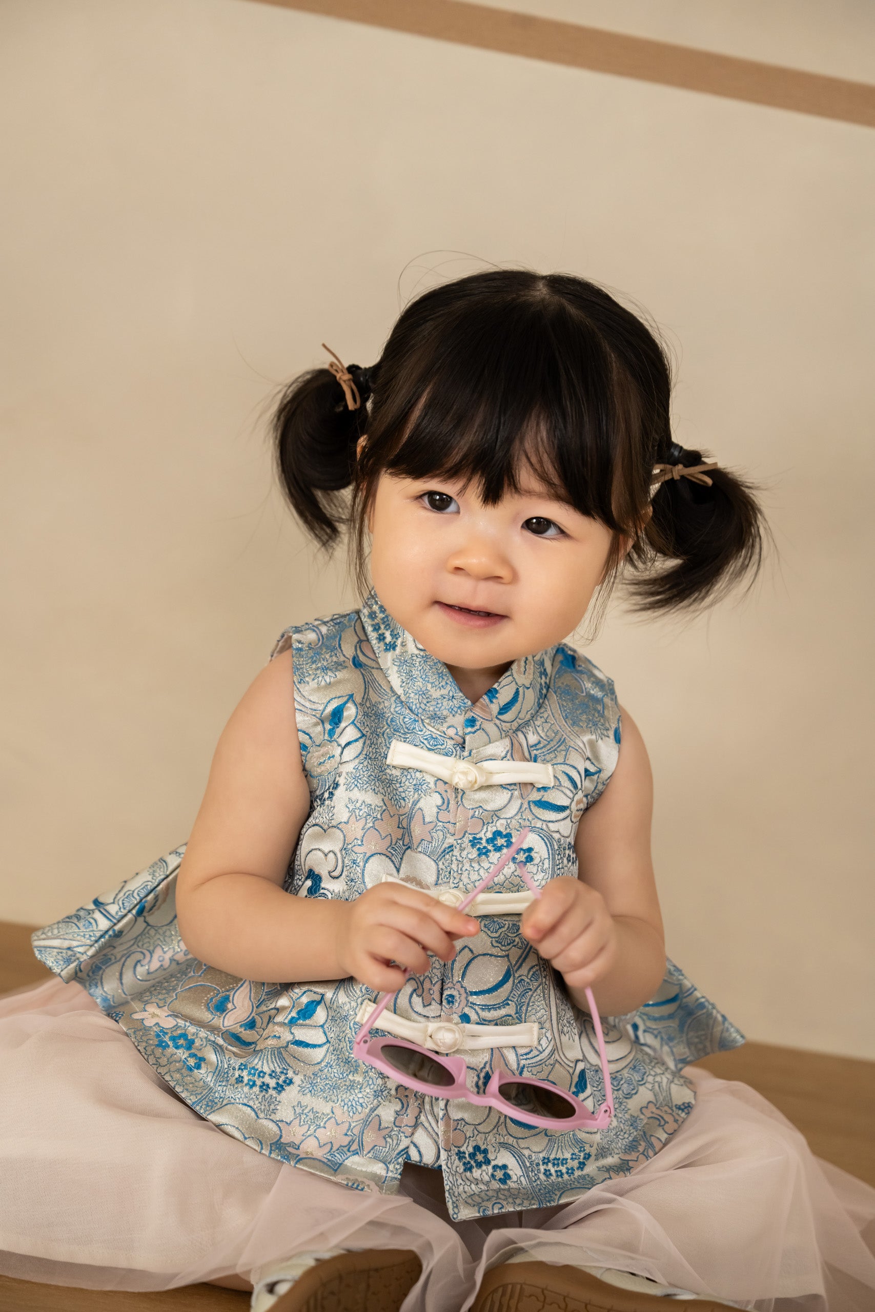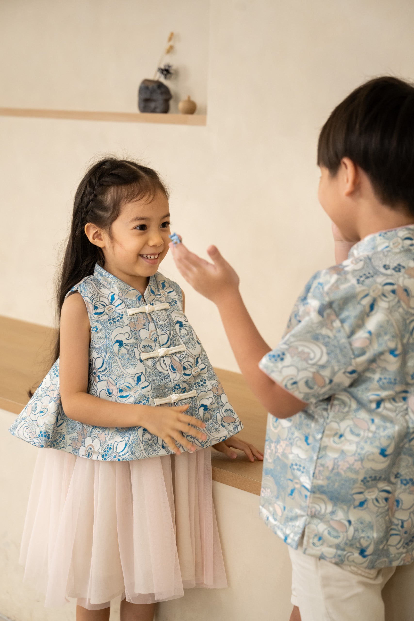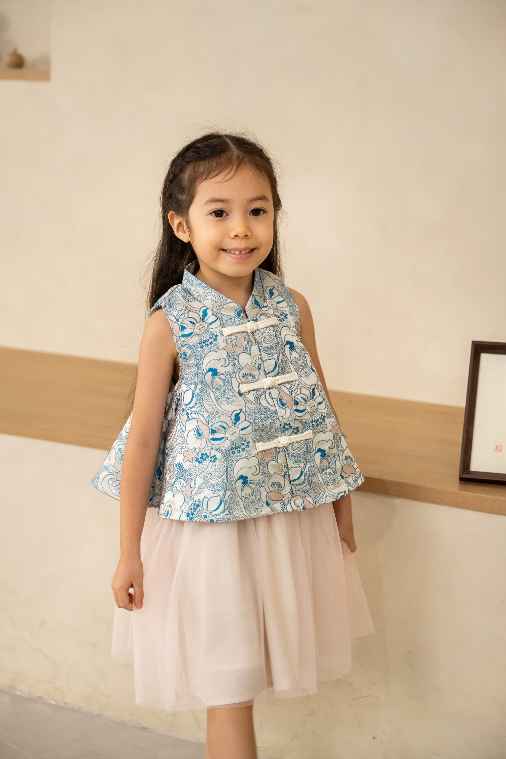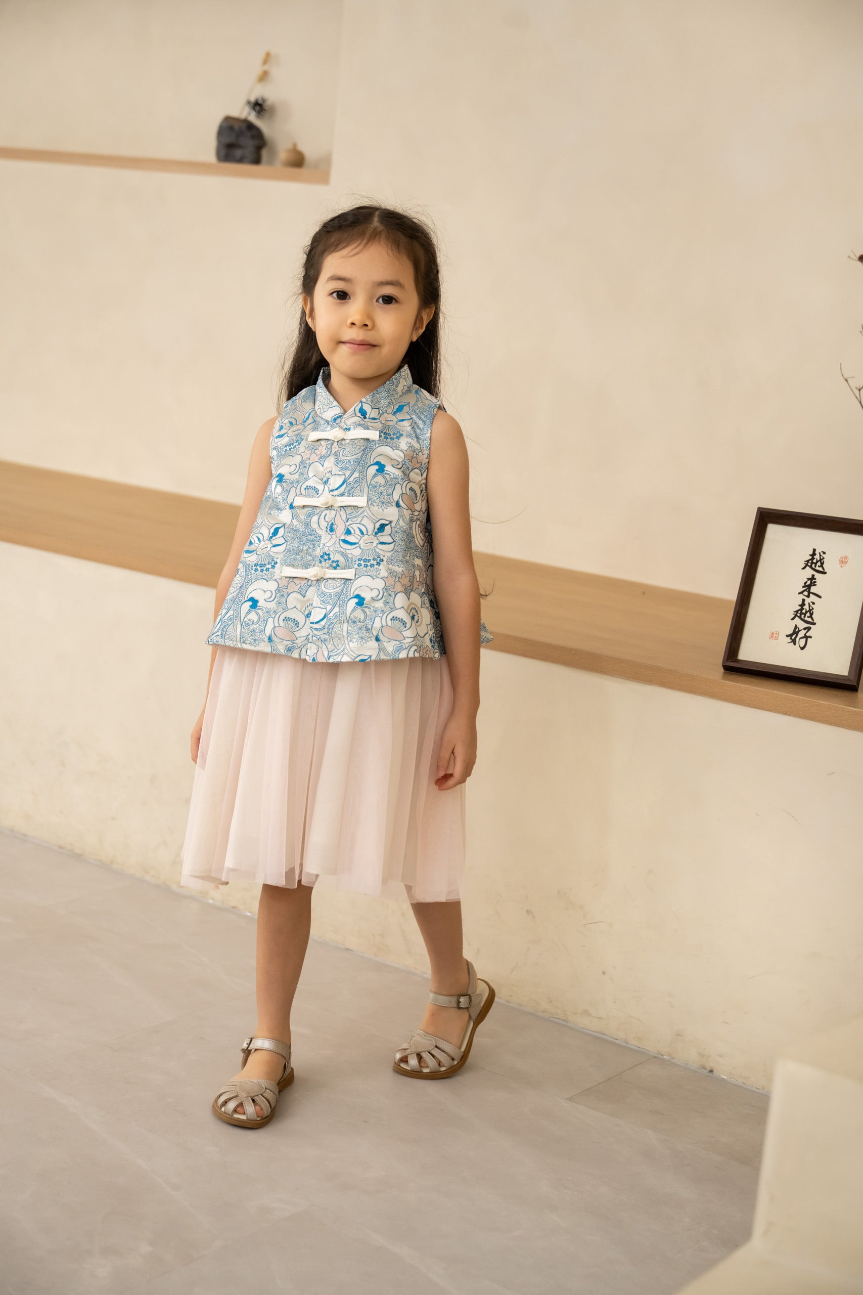 The Cheongsam Edit – Little Cheongsam Tulle 2-Pcs Set in Porcelain Blue