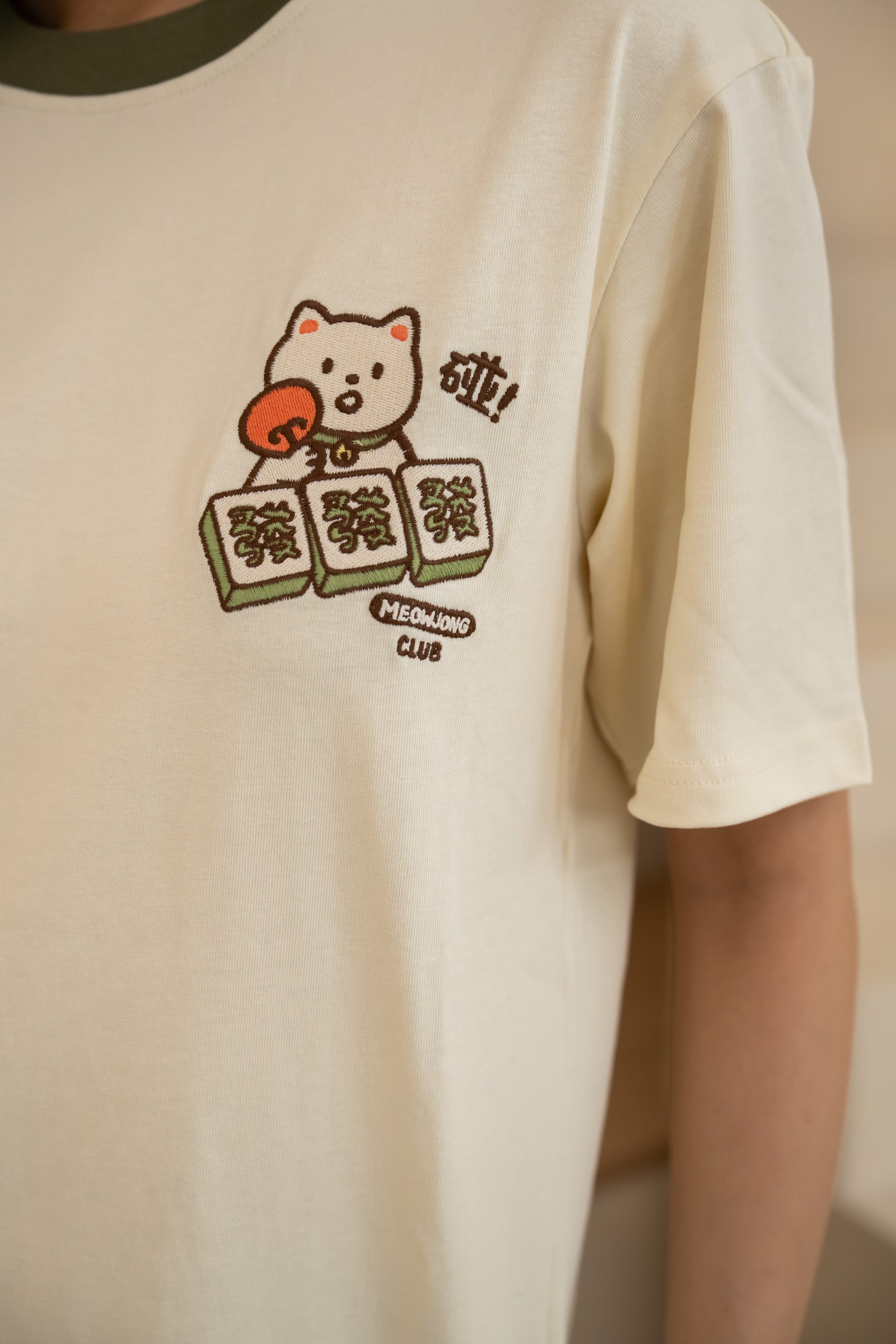 Join the Meowjong Club — where cats rule the Mahjong table! This tee features our exclusive embroidered front logo of a lucky cat proudly holding Mahjong tiles, symbolizing prosperity and fun. The back print showcases the full “Meowjong Club” scene with our playful tagline — “Strictly a Cat-Only Table” — making it a true conversation starter.