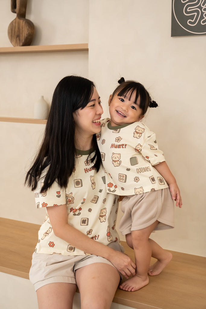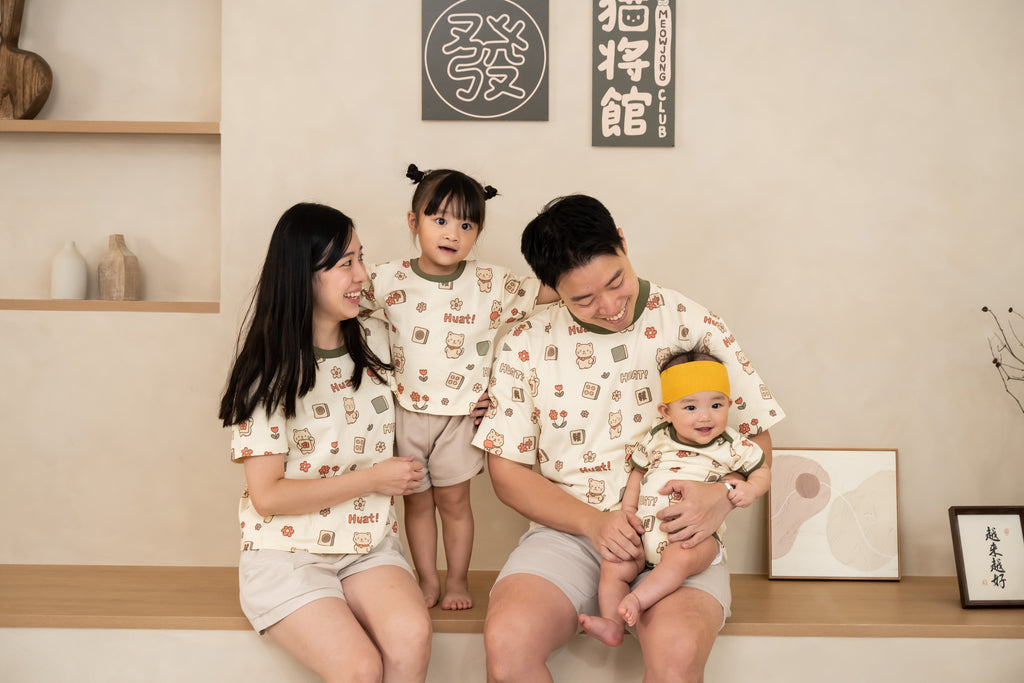 Say Huat! with our adorable Meowjong Club Kids Full-Print Tee — a playful mix of lucky cats and Mahjong tiles designed to bring joy and fortune to every little one! This oversized, baggy-cut tee offers a relaxed fit for easy movement and all-day comfort. Featuring our exclusive in-house full-print pattern, it’s made from soft, breathable cotton that’s gentle on sensitive skin. Perfect for twinning with the family this festive season — cute, comfy, and full of good vibes!