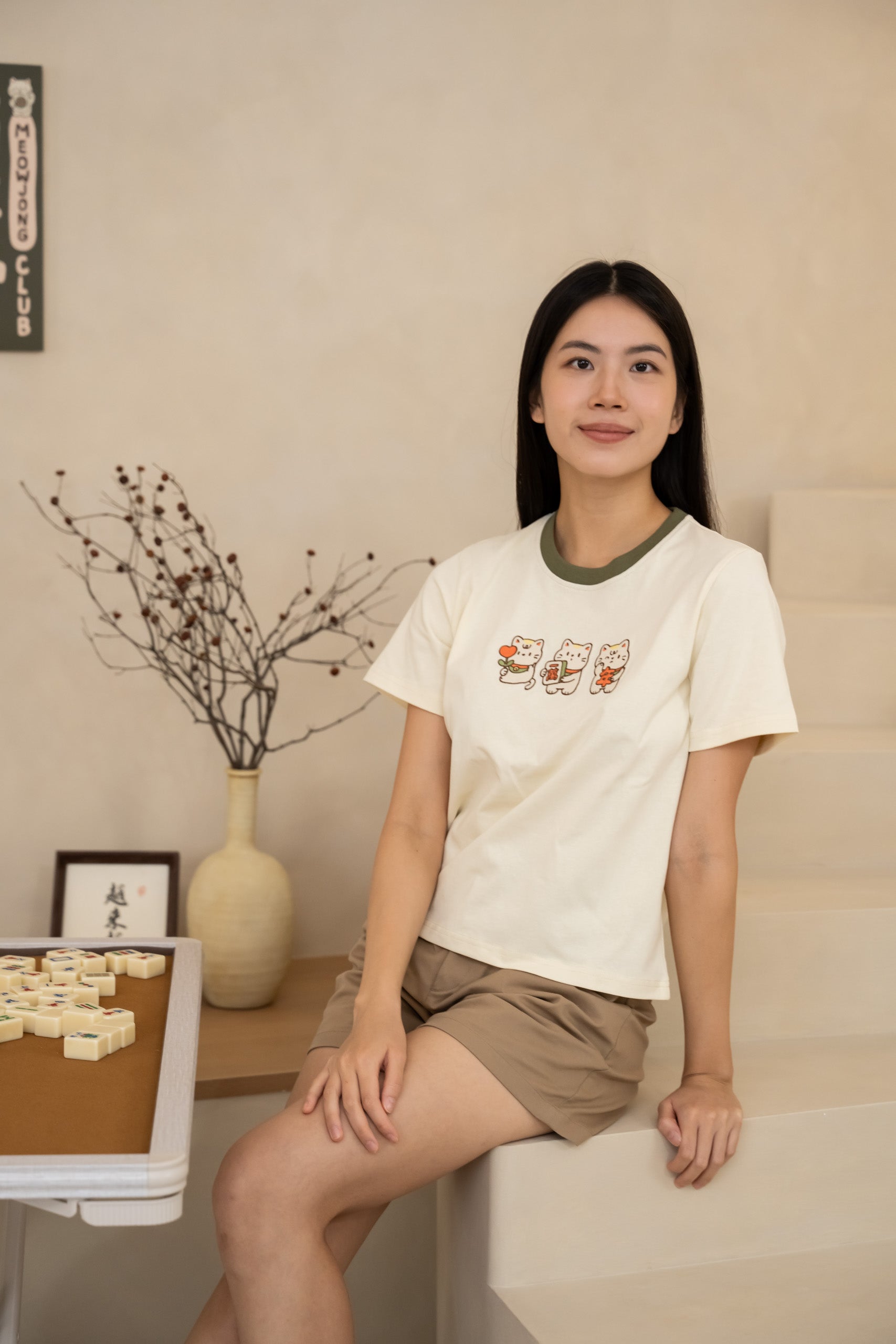 Fall in love with our Meowjong Club Women’s Boxy Tee – 爱你一万年 Edition 🐾. Designed with a relaxed boxy silhouette for a flattering and comfy fit, this piece features our signature embroidered trio of lucky cats, each holding Mahjong tiles that spell “爱你一万年” — Love You 10,000 Years. A sweet nod to timeless love and prosperity, this tee blends meaning with minimalism.