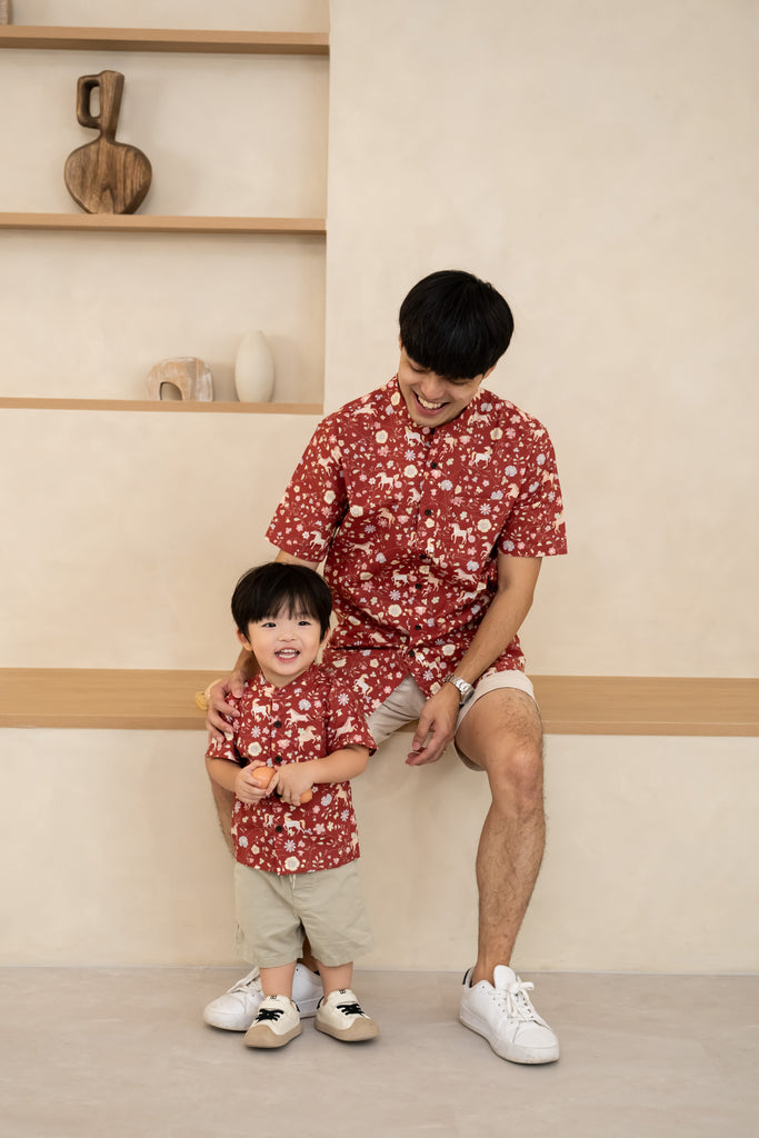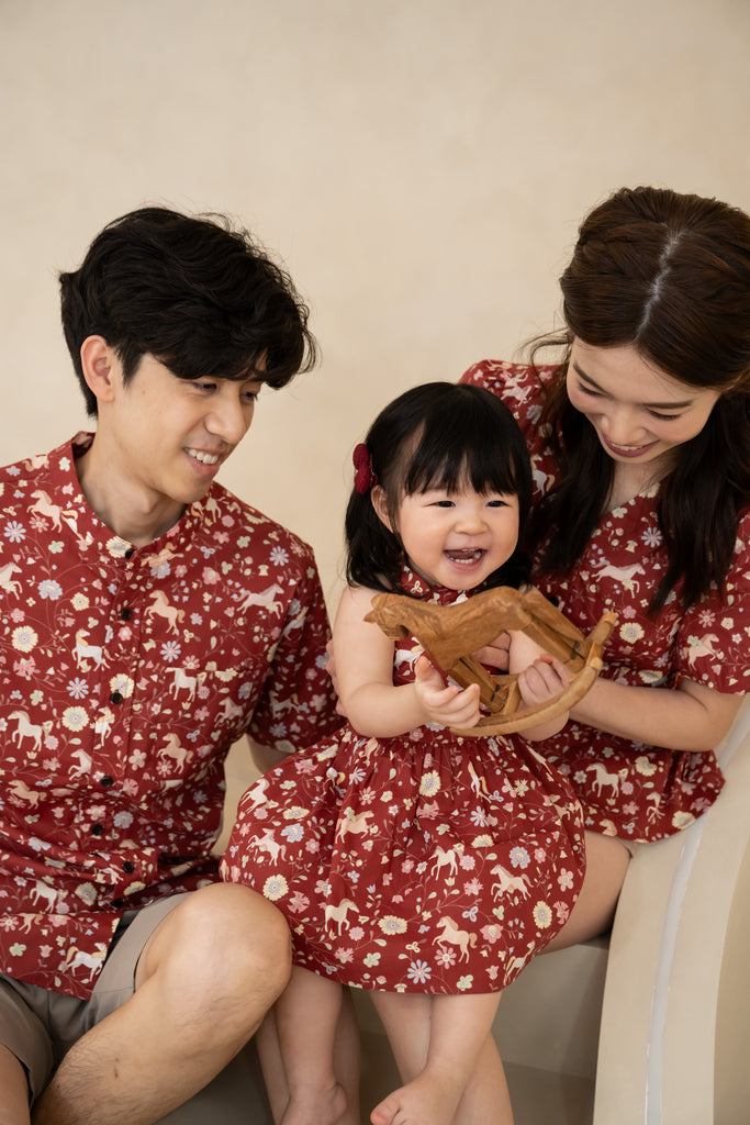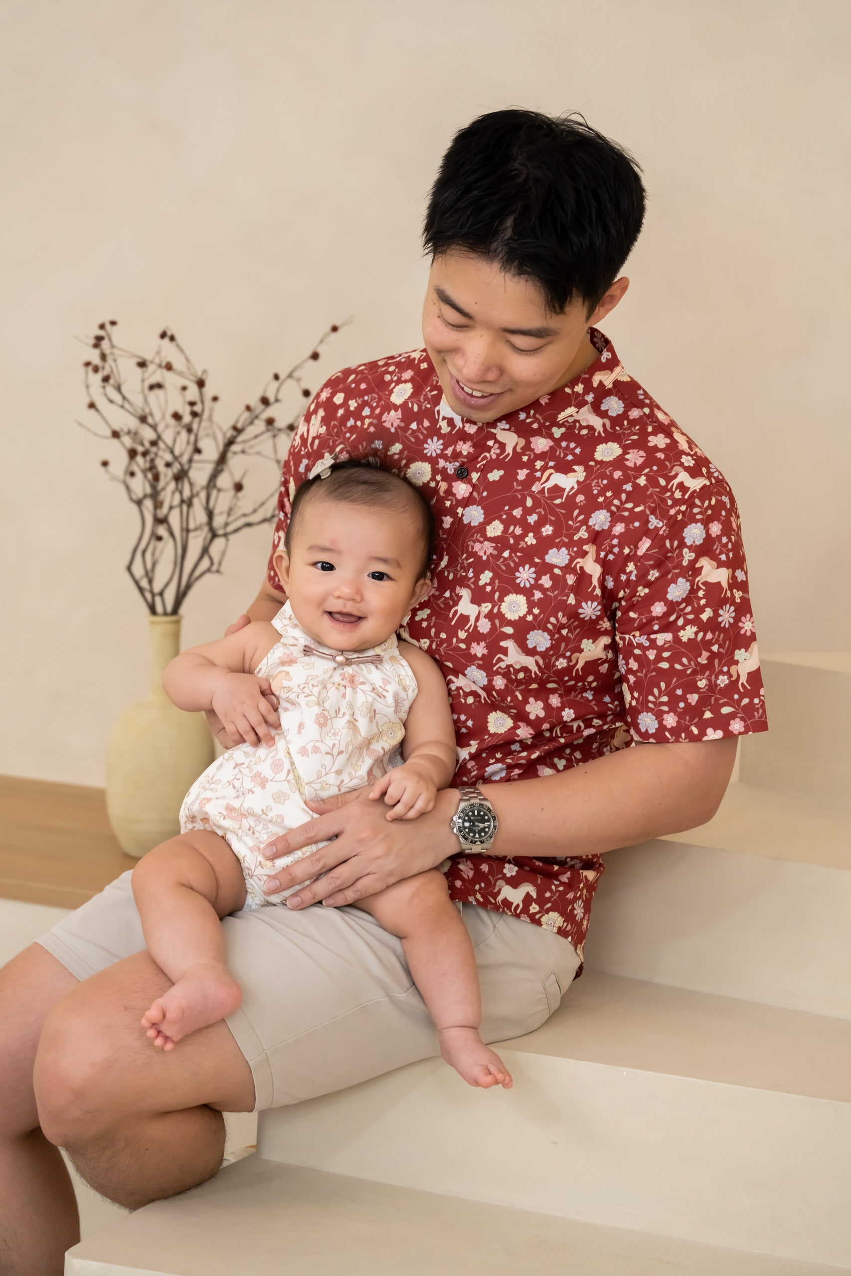 Clean, classic, and effortlessly festive — the Dainty Horse Men’s Collar Shirt combines modern tailoring with playful charm. Designed with our exclusive in-house Dainty Horse print, this shirt celebrates the Year of the Horse through delicate hand-drawn motifs of horses and florals in soft pastel hues.